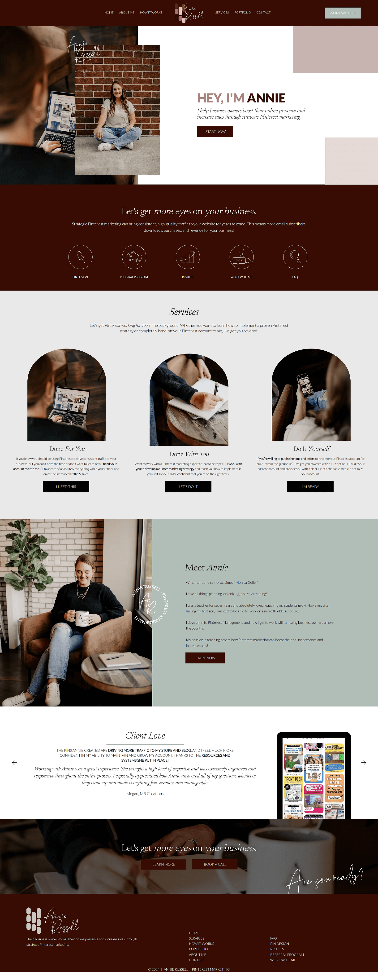 Not only did Leigh take the time to truly understand my business and branding, but she also had an incredible eye for design and were able to create a website that perfectly reflected my vision. Leigh was patient and accommodating throughout the entire process, making sure that every detail was just right and that I was completely satisfied with the end result.